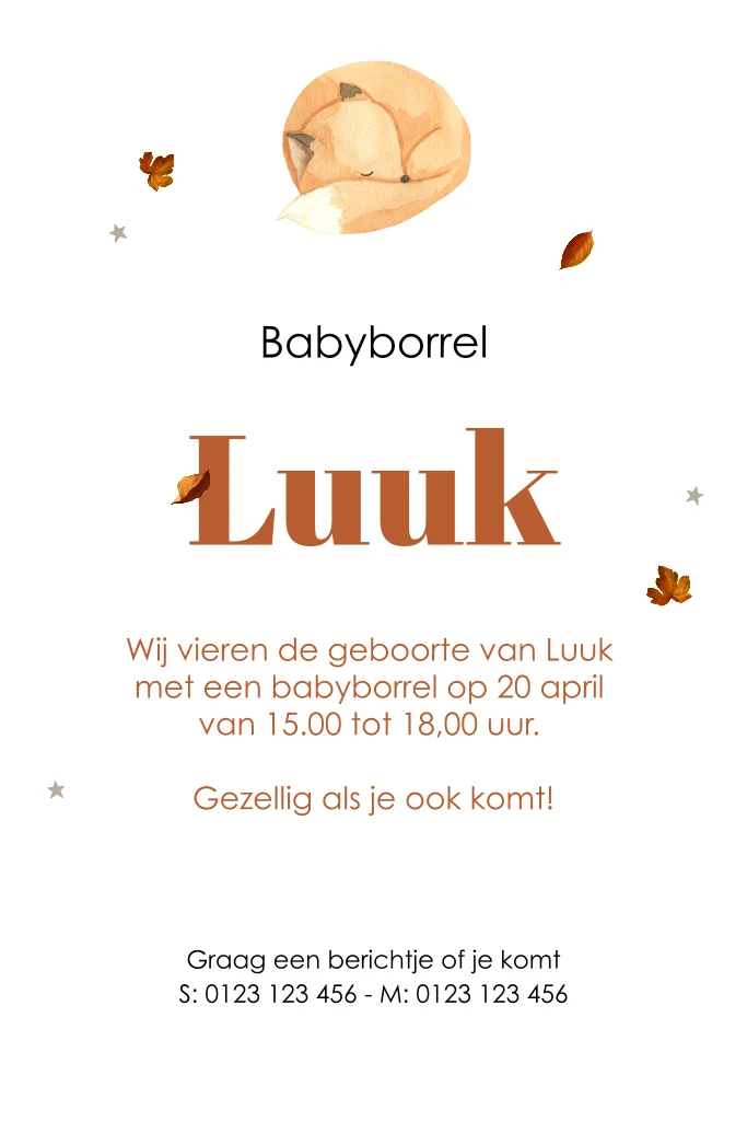 Een bijpassend kaartje als uitnodiging voor jullie babyborrel. Nodig vrienden en familie uit met dit babyborrelkaartje om jullie kindje te bewonderen. Het kaartje is op biotop papier wat een off-white papiersoort is.Bekijk ook het bijpassende geboortekaartje.