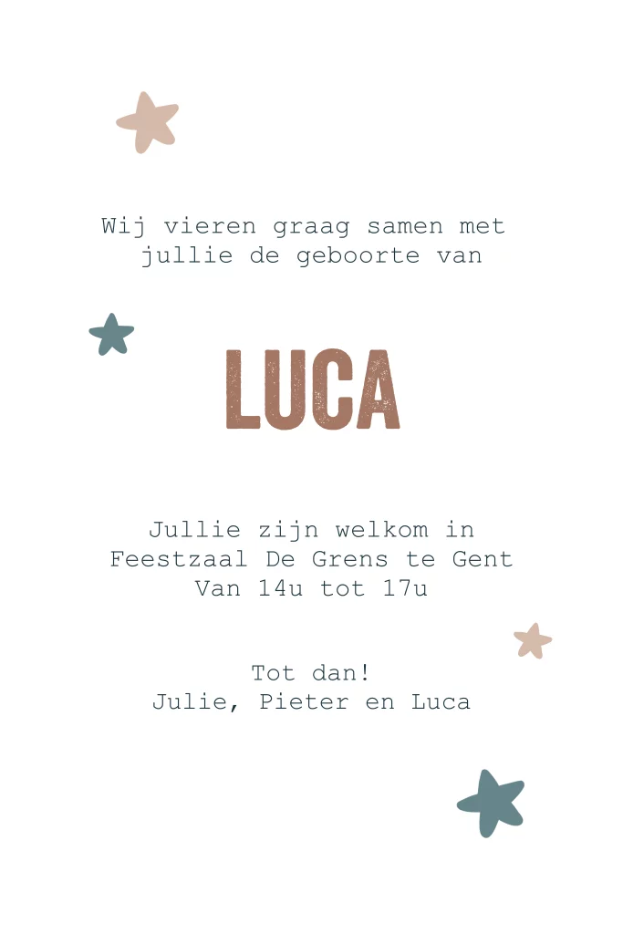 Nodig je familie en vrienden uit voor je babyborrel met dit babyborrelkaartje. Laat het geboortekaartje matchen met het originele geboortekaartje.| Totaalprijs: 0 |