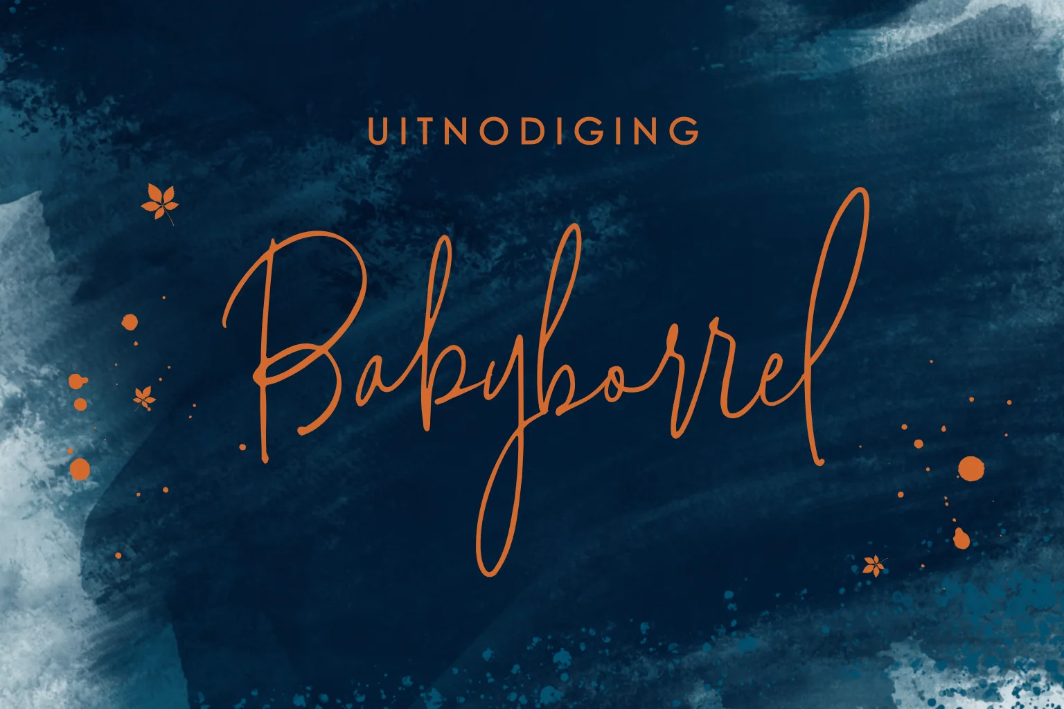 Stijlvolle uitnodiging voor een babyborrel in donkerblauwe waterverf.Bekijk ook de bijpassende geboortekaart.