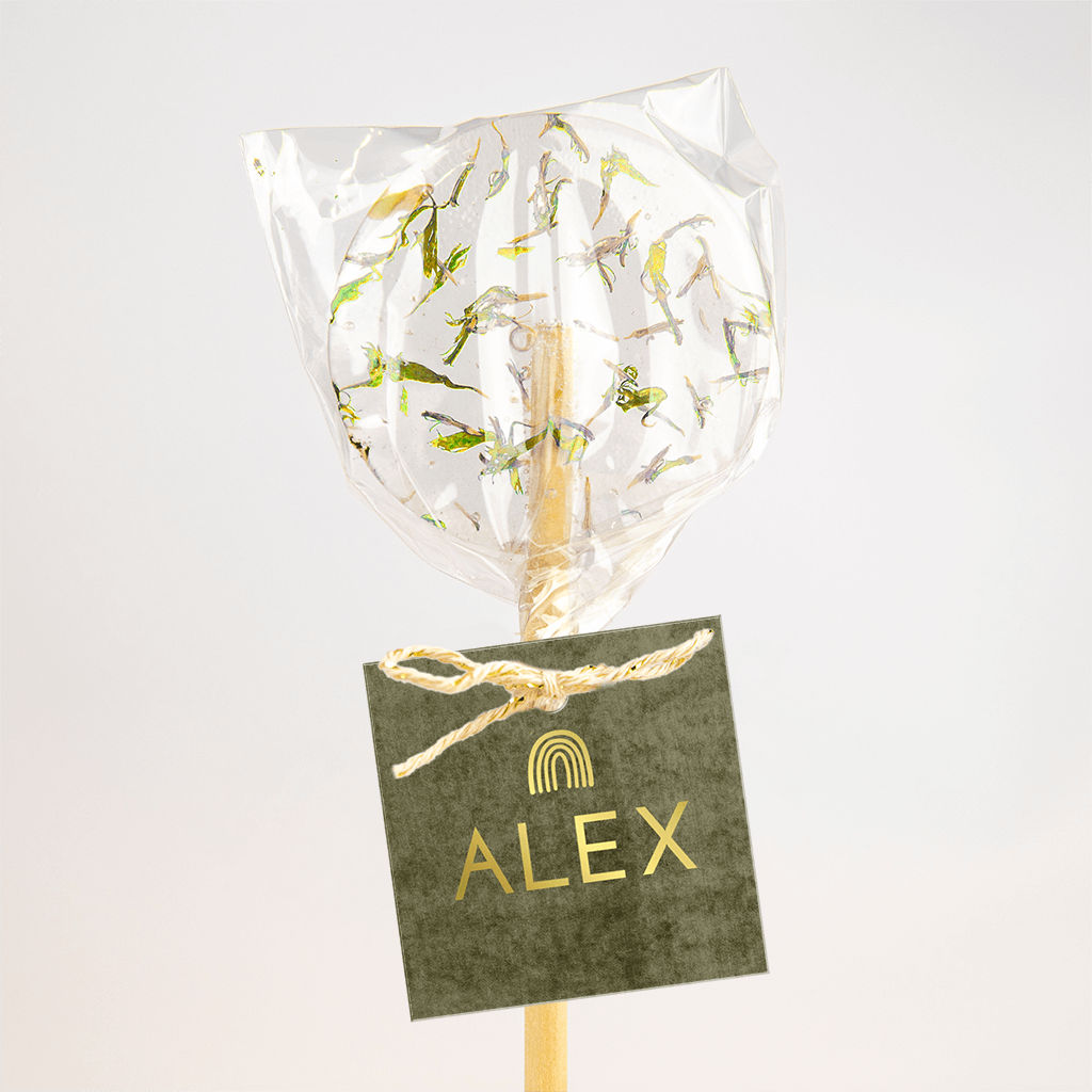 Goudfolie label met regenboog en groene velvet-look - 16 stuks