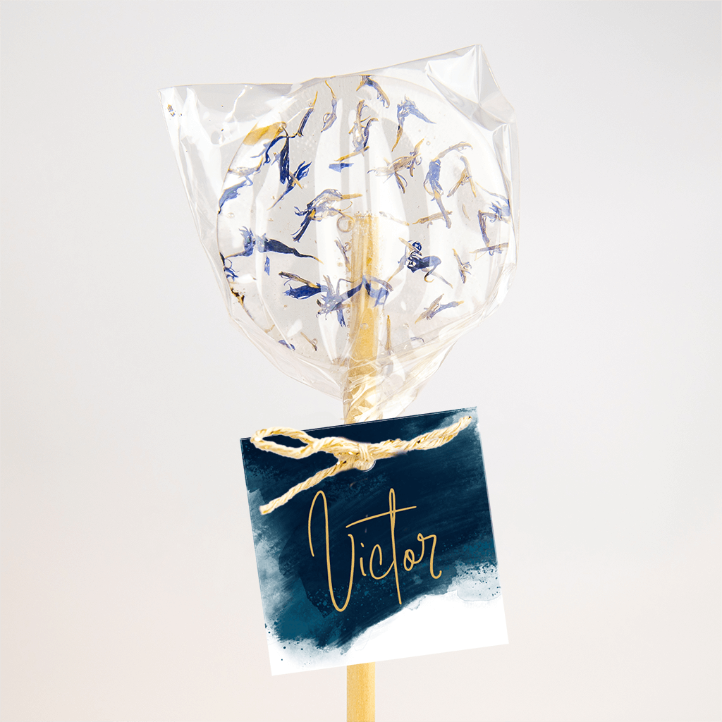 Label met donkerblauwe waterverf 40x40mm, op coated karton, 16 stuks.