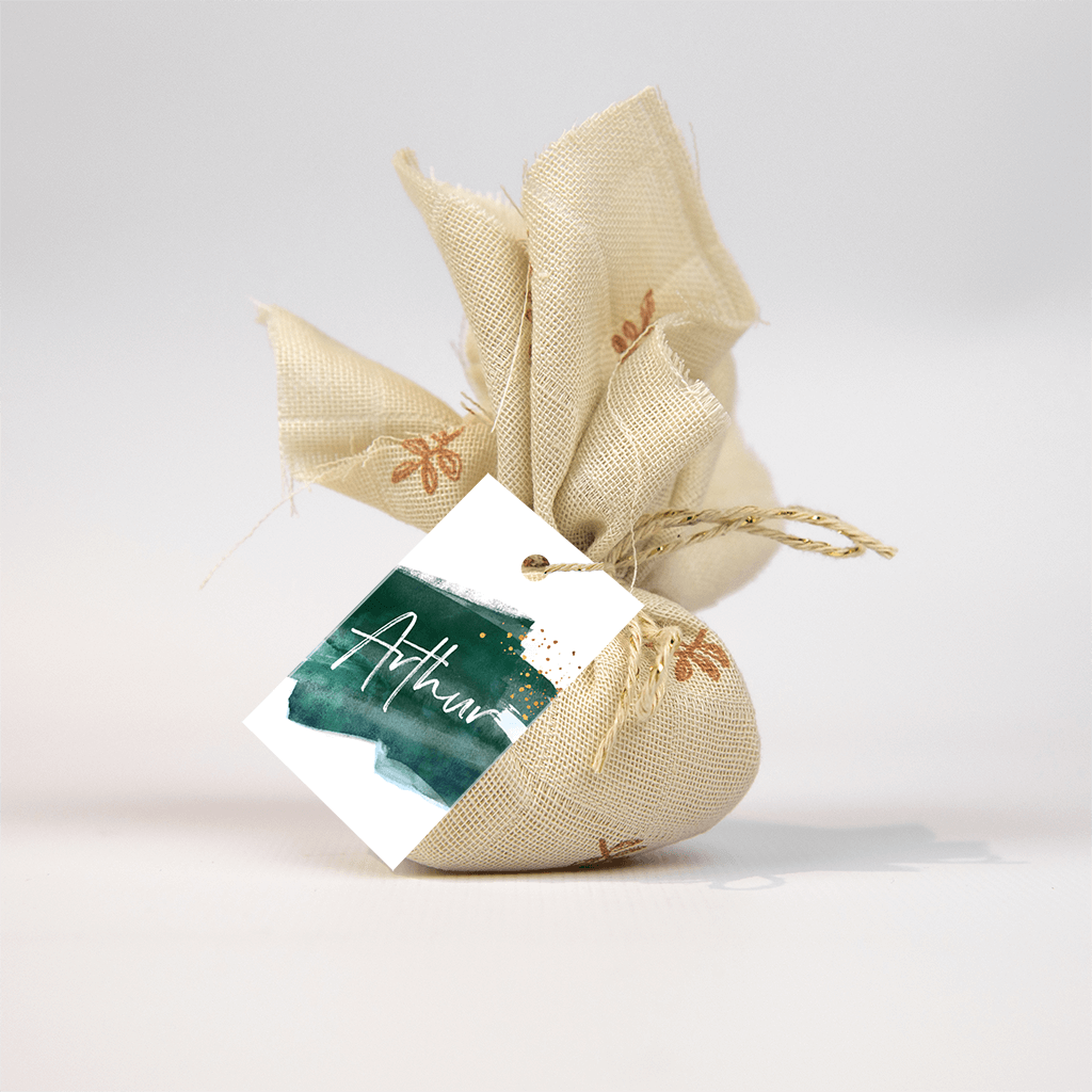 Label met groene watercolour strepen 30x50mm, op coated karton, 18 stuks.