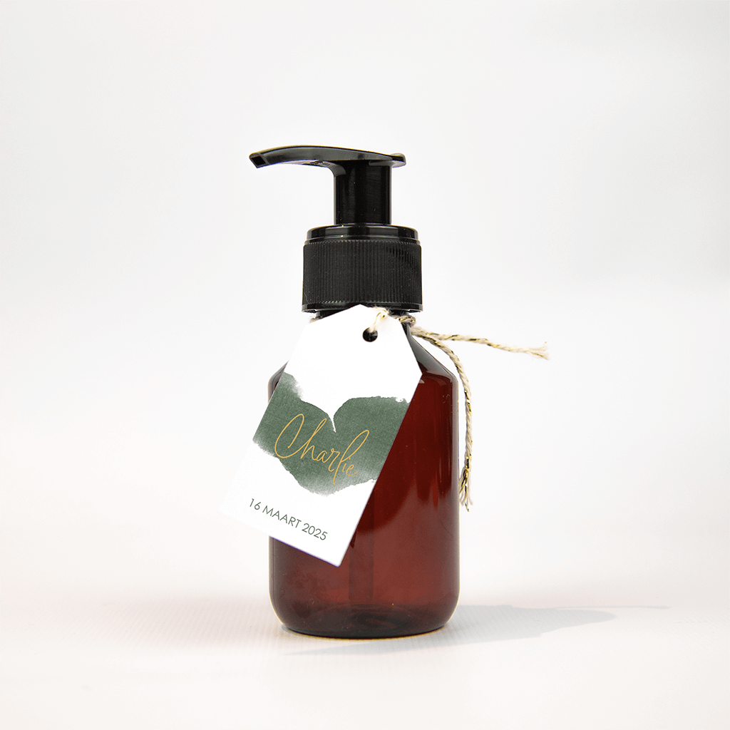 Wit label met groene waterverfstreep, 30x60mm, op coated karton, 18 stuks.| Totaalprijs: 0 |
