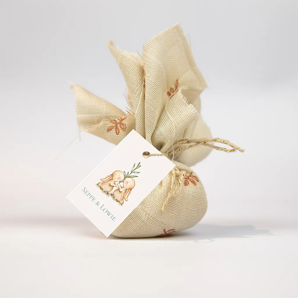 Label kaartje met illustratie van twee konijntjes voor een tweeling. Gebruik het labeltje voor aan een doopsuiker of een geboortekaartje.