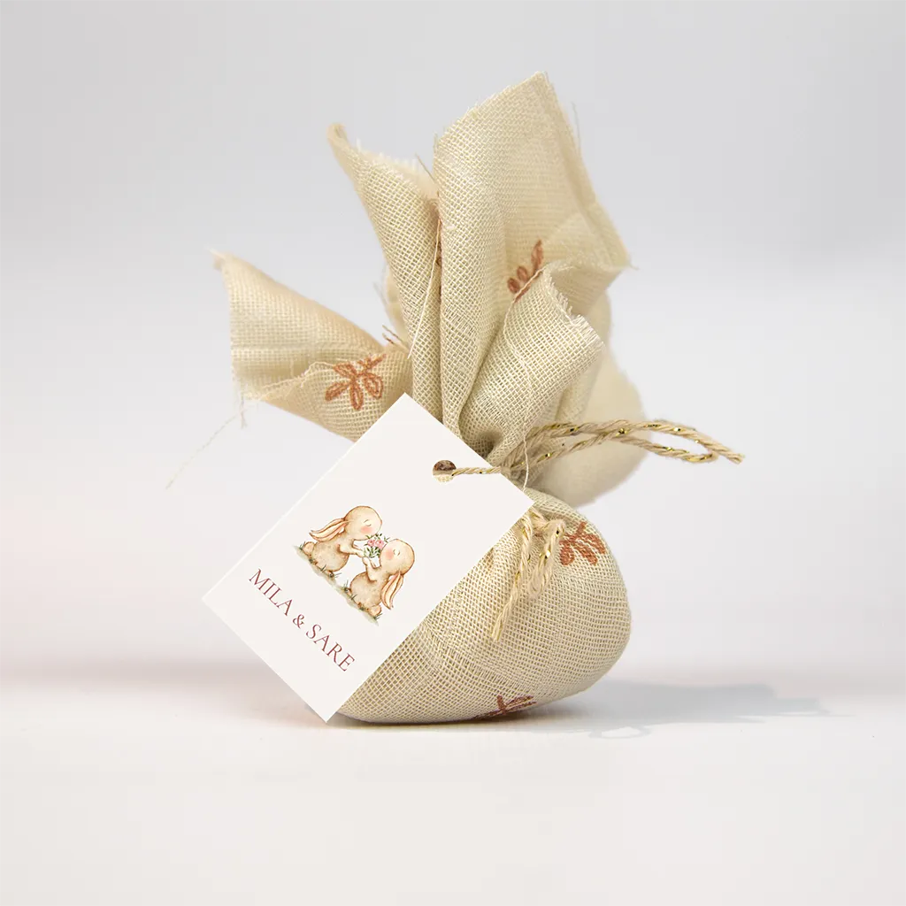 Label kaartje met illustratie van twee konijntjes voor een meisjes tweeling. Gebruik het labeltje voor aan een doopsuiker of een geboortekaartje.