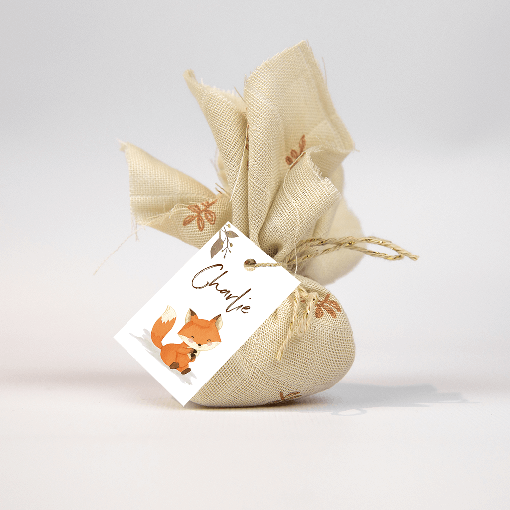 Een schattig labeltje met een vosje en klein takje erop. Gebruik het labeltje voor aan een doopsuiker of een geboortekaartje.Bekijk ook het bijpassende geboortekaartje.