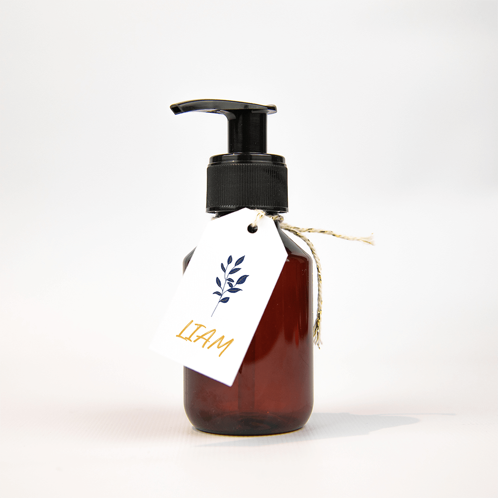 Labeltje met blauw takje en naam in geel - 18 stuks