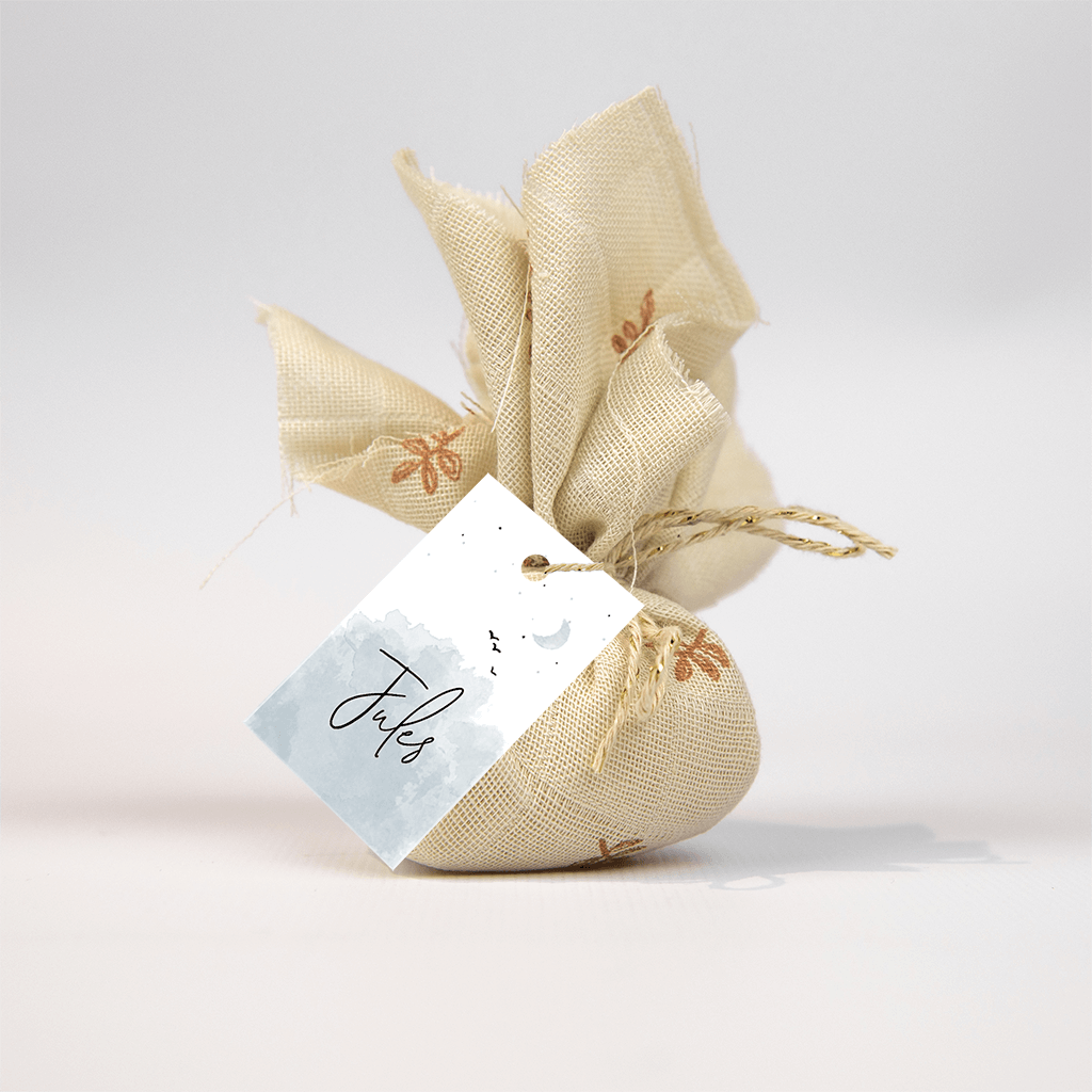 Labeltje met blauwe aquarel en maan - 18 stuks