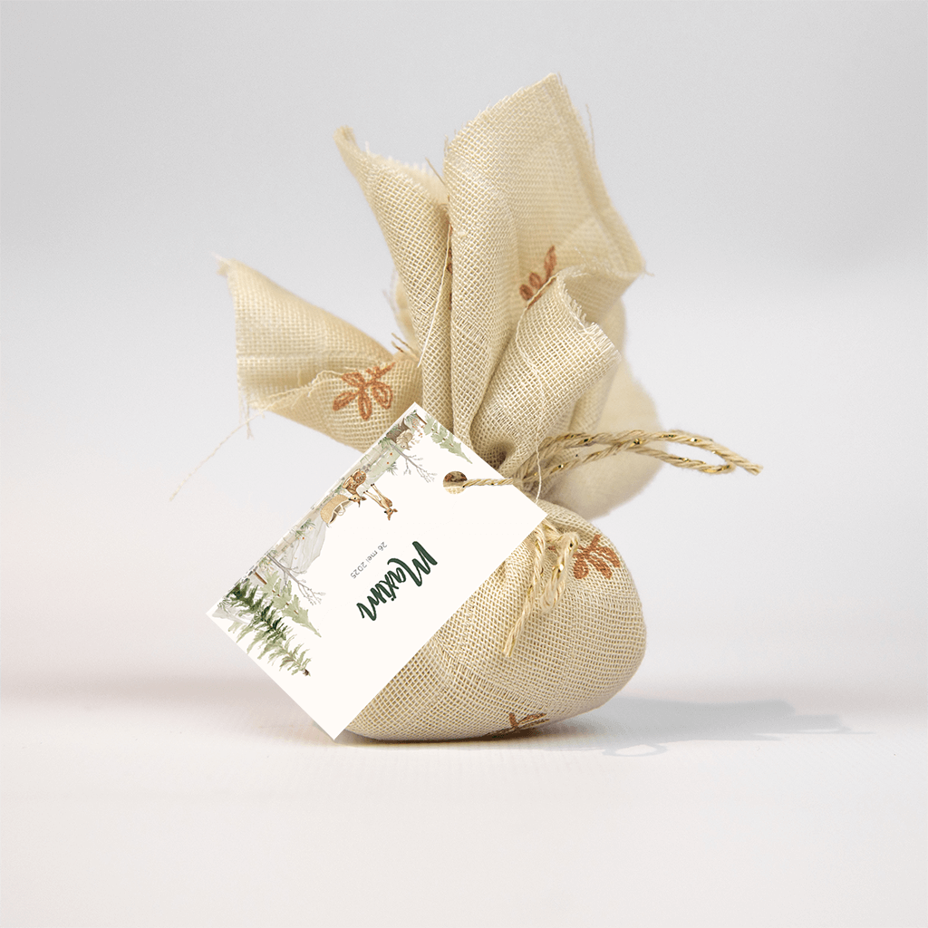 Labeltje met bosdieren en baby mandje - 18 stuks
