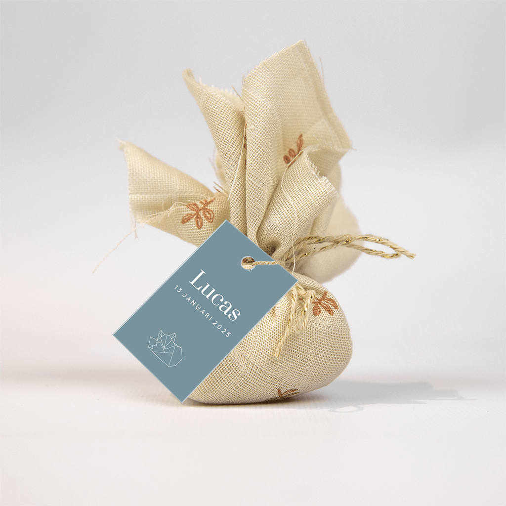 Labeltje voor doopsuiker met vosje op blauwe achtergrond