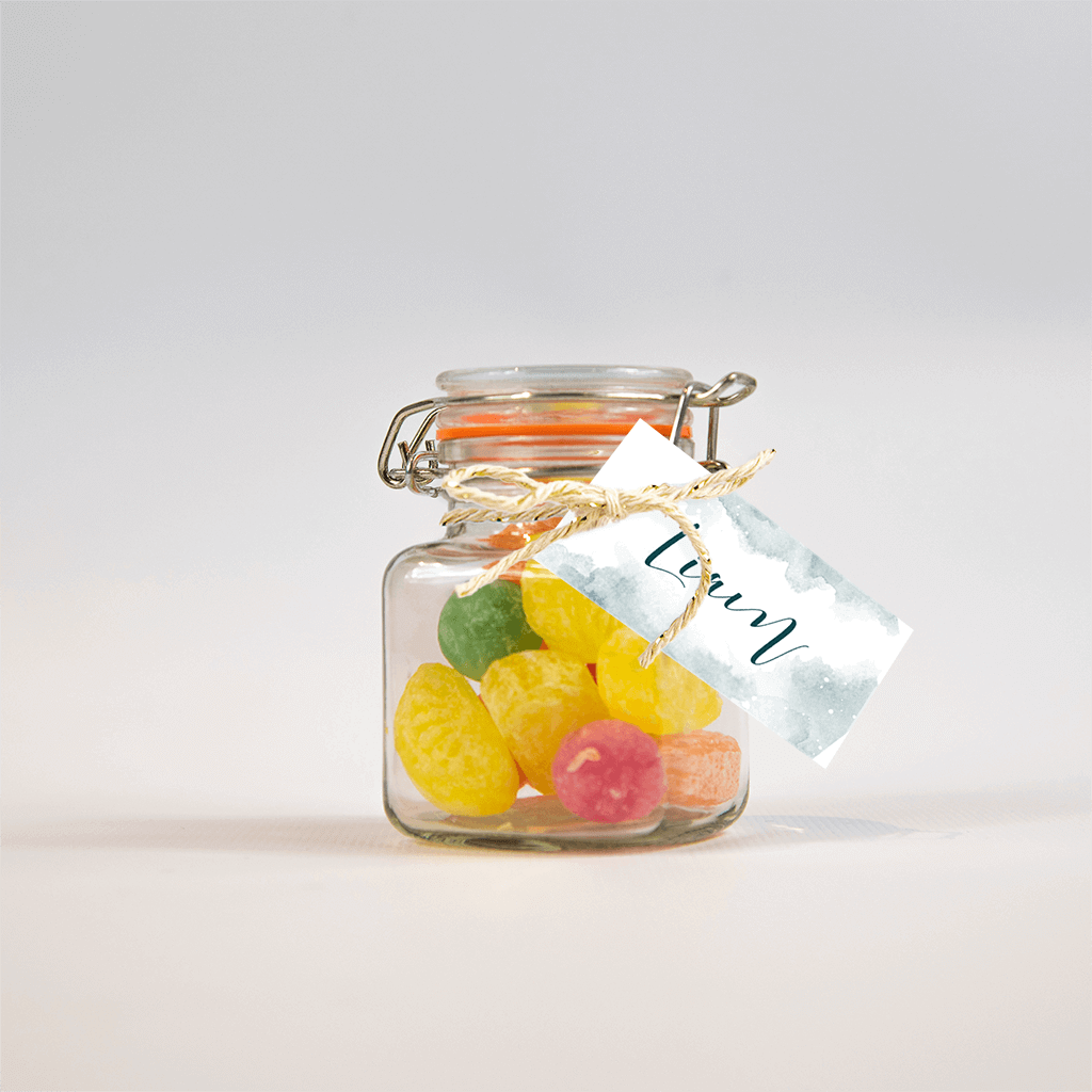 Het labeltje heeft een blauwe aquarel achtergrond. Leuk om de doopsuikers of het geboortekaartje mee te versieren!