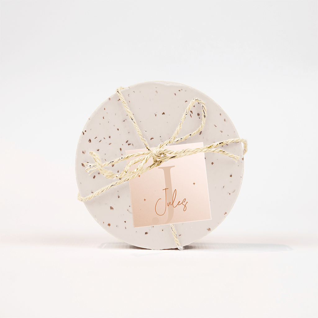 Een mooi labeltje die het geboortekaartje of de doopsuikers een leuke extra geeft. Op het labeltje staat een vergroot initiaal.