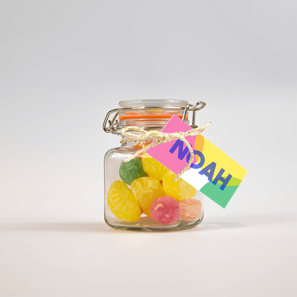 Origineel labeltje om je doopsuikers mee te versieren. Pas de naam en kleuren gemakkelijk aan in onze editor.