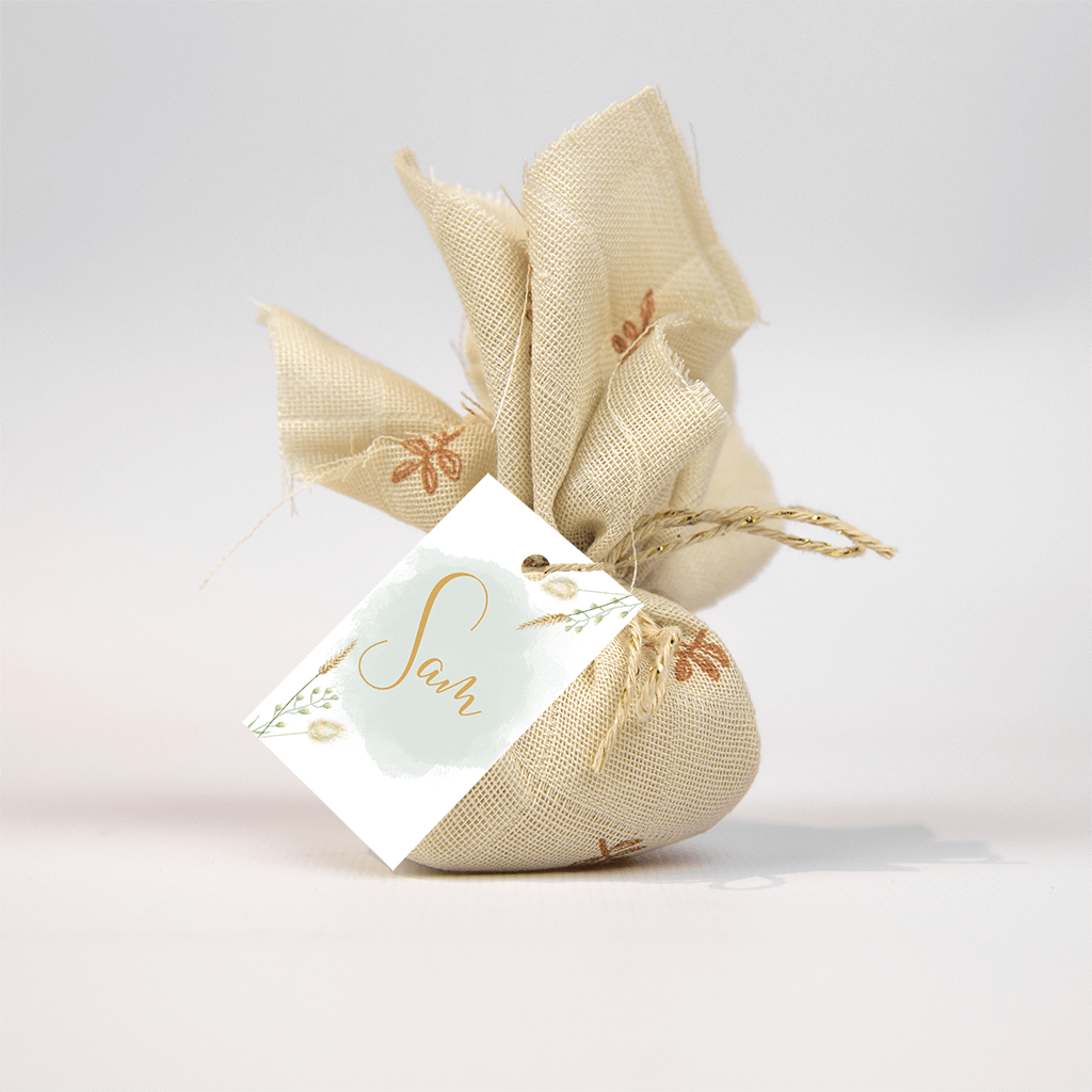 Een lief labeltje die het geboortekaartje of de doopsuikers een leuke extra geeft. Het labeltje is versierd met takjes en waterverf. Pas de naam gemakkelijk en snel aan in onze online editor!
