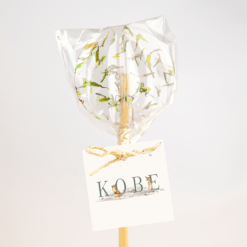 Schattig labeltje met bosdieren om je babykaart of doopsuiker mee te versieren. Het kleine vlindertje boven de naam in stoere letters zorgt voor een lief accent!| Totaalprijs: 0 |
