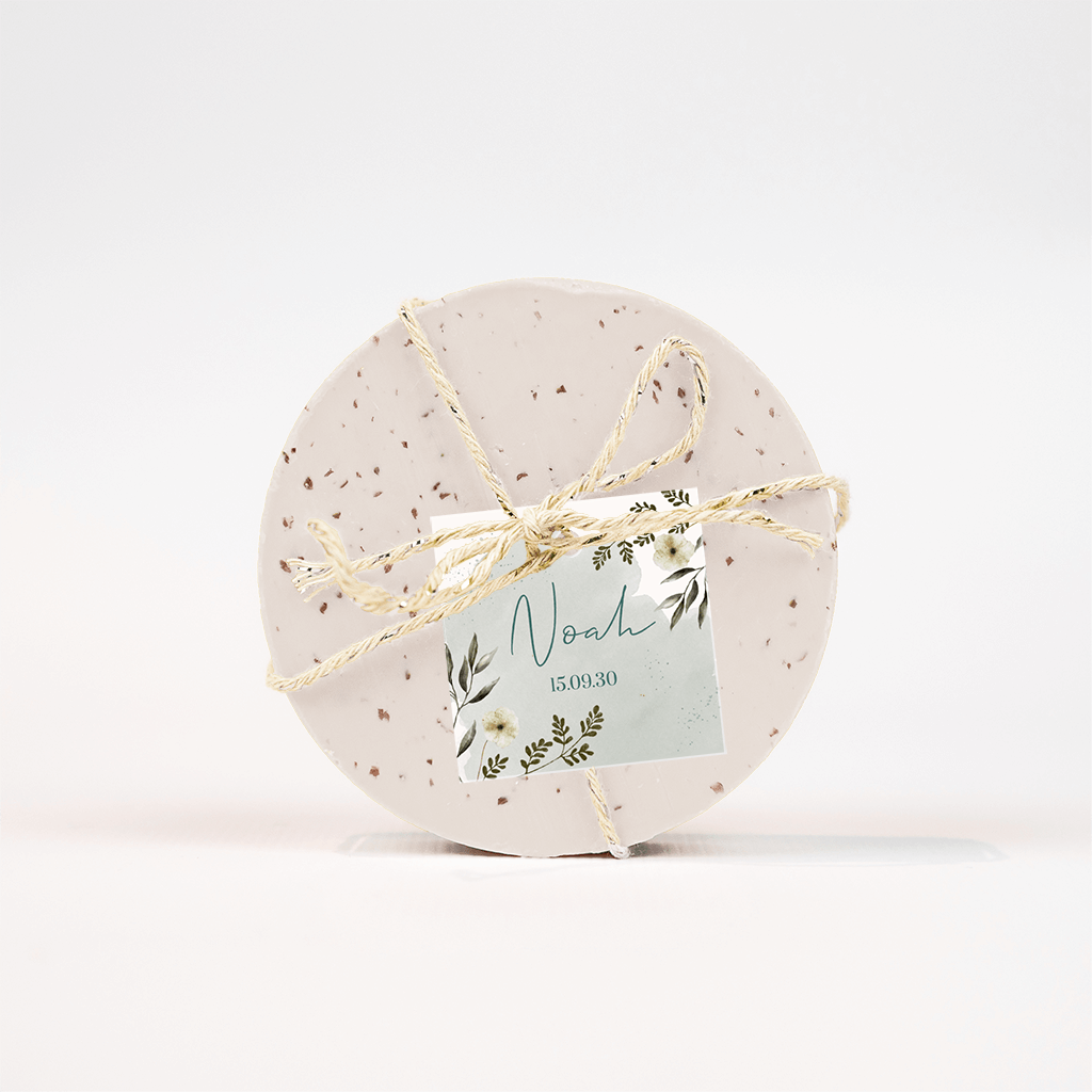 Lief labeltje om je geboortekaartje of doopsuiker te versieren. Op het label staan groene watercolour takjes de naam en geboortekaartje. De afmeting van het labeltje is 40x40 mm.| Totaalprijs: 0 |