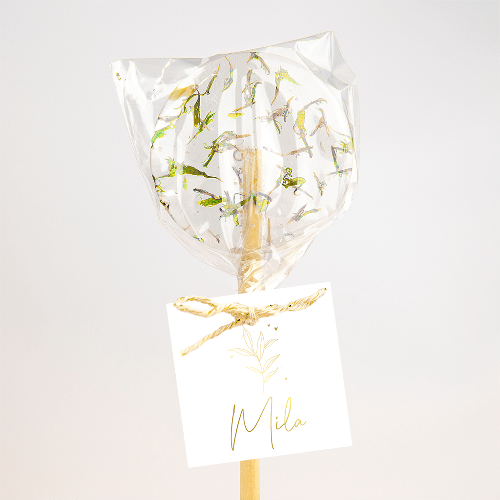Minimalistische label met goudfolie takje - 16 stuks