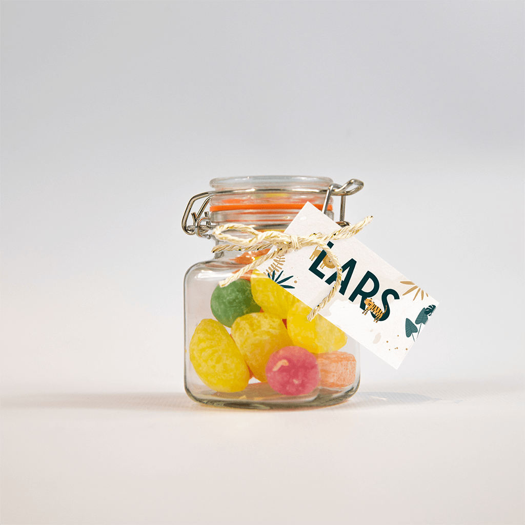 Een stoer label in jungle thema met een leeuw en tijger. Leuk om de doopsuikers mee te versieren!