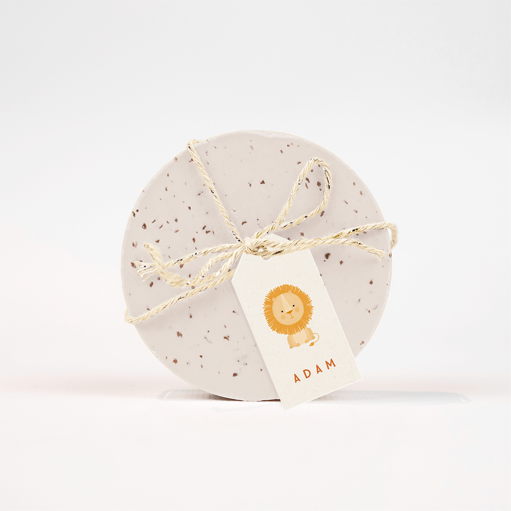 Leuk beige labeltje met een goudgeel leeuwtje, past perfect bij het schattige geboortekaartje met het leeuwenwelpje. Gebruik het labeltje voor je doopsuikers!