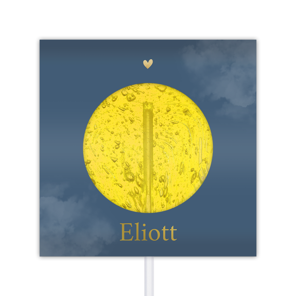 Lolly verpakking met draakje op de achterkant en rond doorkijkje op de voorkant.
