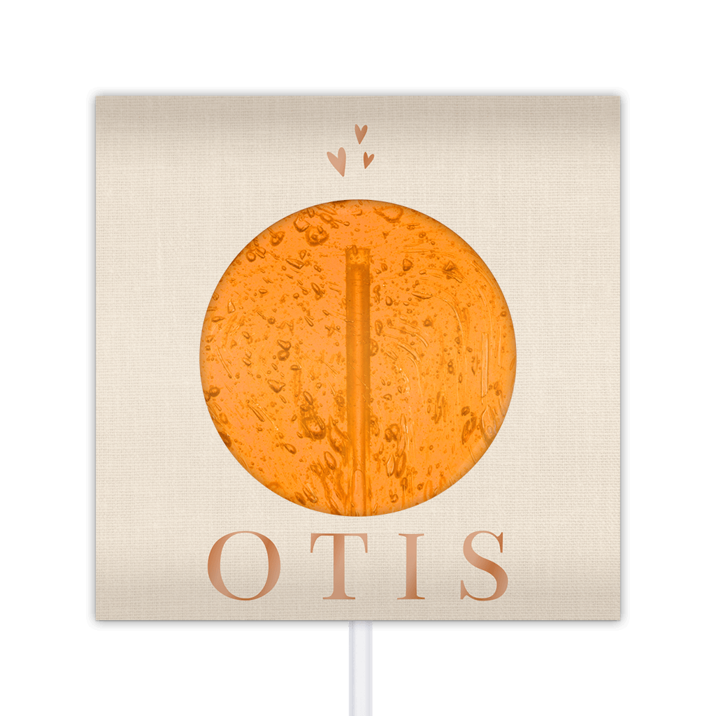 Lolly verpakking met beige achtergrond en tekst met hartjes in hoogglans. Het doorkijkje geeft een leuke kijk op de lolly die je hier in stopt.