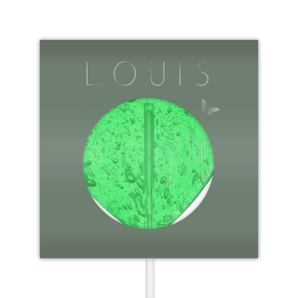 Lolly verpakking met hoogglans en lijntekening van een baby. Gebruik de lolly verpakking om de lolly's voor je doopsuiker te versieren in de stijl van je geboortekaartjes.