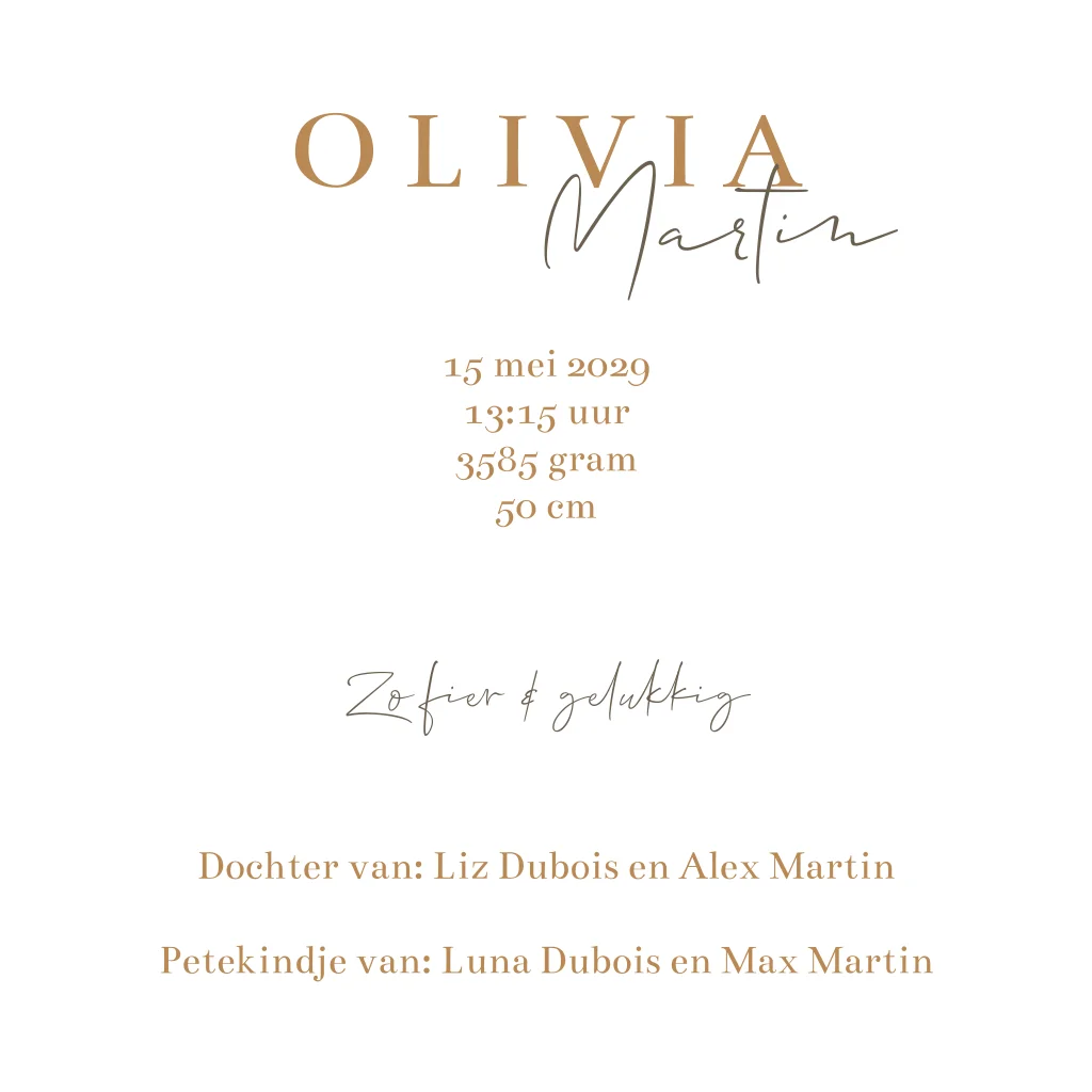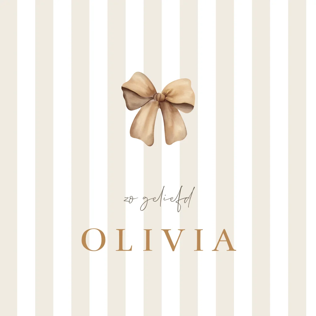 Een klassiek geboortekaartje met strepen in zachte kleuren en een mooie strik zowel op de voor- als binnenkant. Pas de kaart geheel naar wens aan in de online editor.