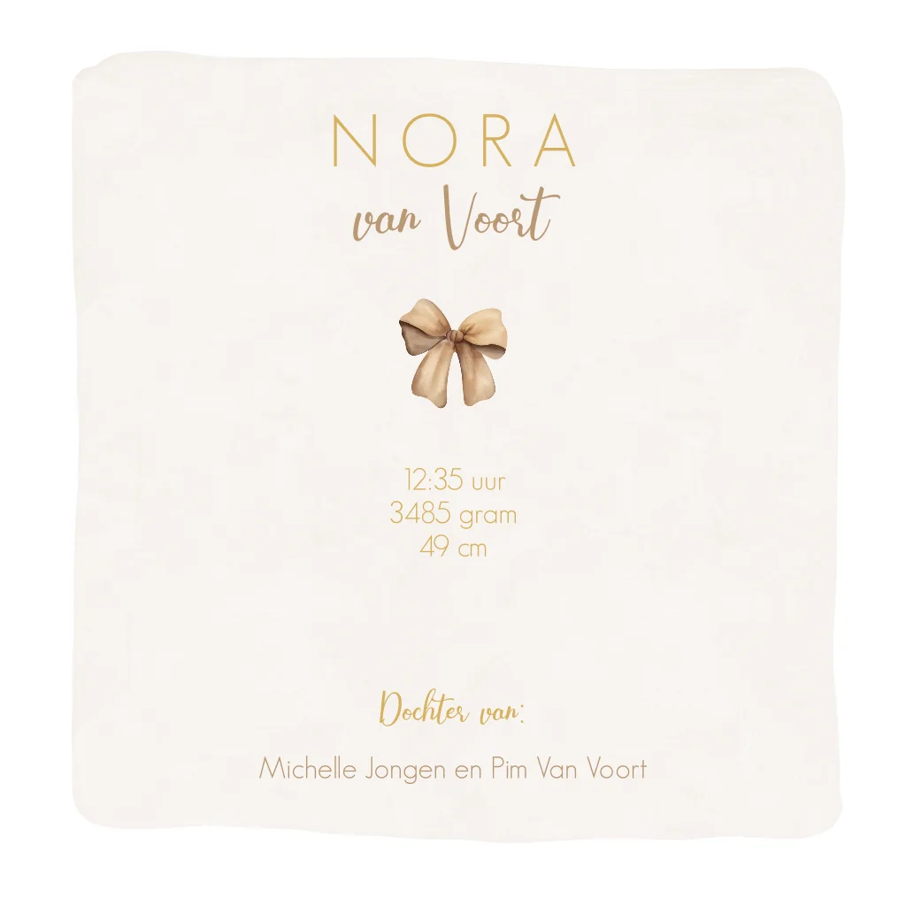 Een lief geboortekaartje voor jullie dochter. Het kaartje heeft een beige achtergrond met daarop een illustratie van een baby in een wiegje. De goudfolie letters geven het geheel een luxe uitstraling. Maak de kaart naar eigen wens in de online editor.Totaalprijs: 0 |