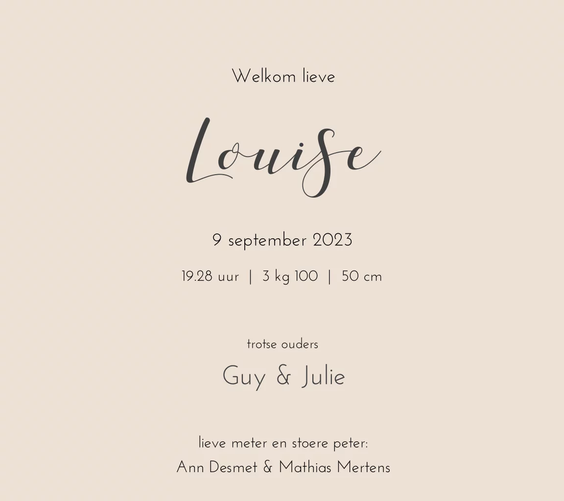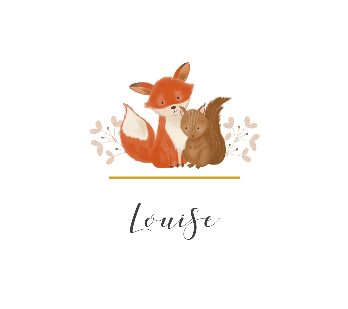 Lief geboortekaartje met illustratie van een vosje en een eekhoorn met aan weerszijden een decoratief takje. Op de binnenzijde komt het eekhoorntje weer terug.Totaalprijs: 0 |