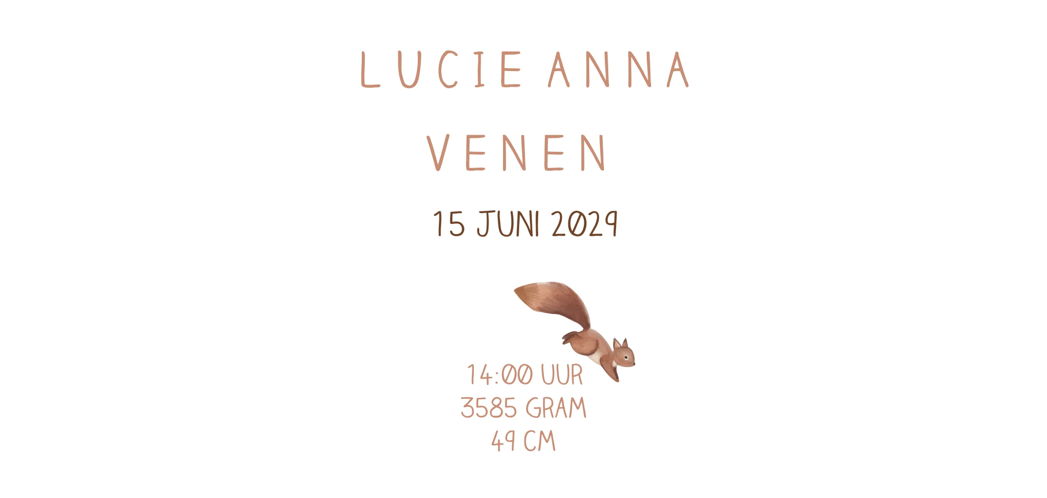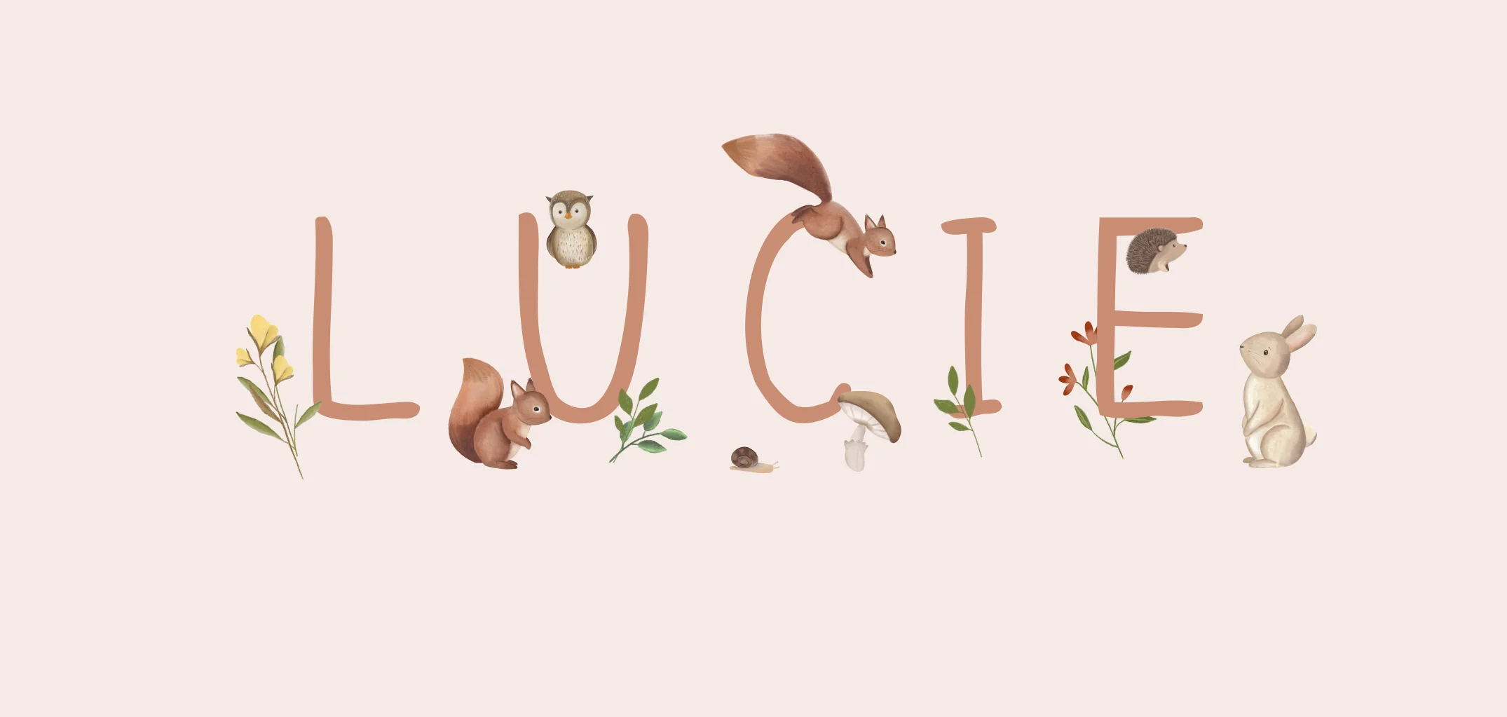 Lief geboortekaartje met grote letters en kleine bosdiertjes