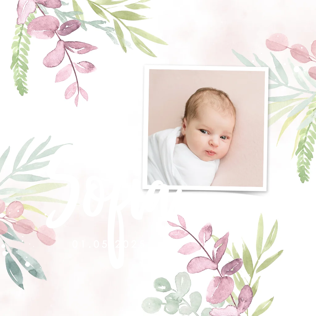 Botanisch geboortekaartje voor een meisje