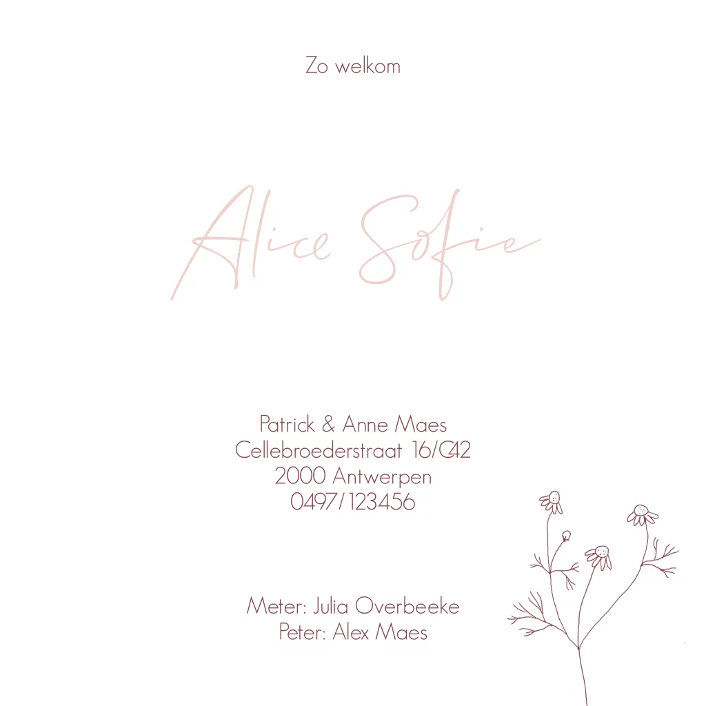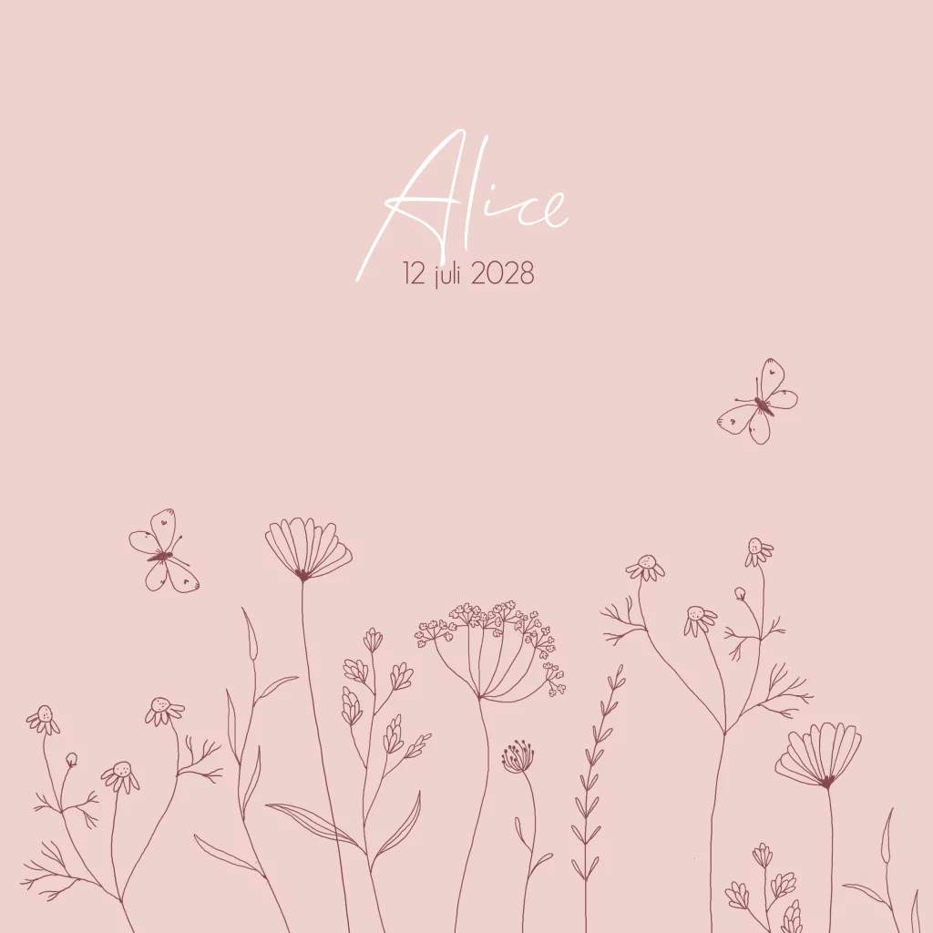 Geboortekaartje meisje lijntekening bloemen en vlinders