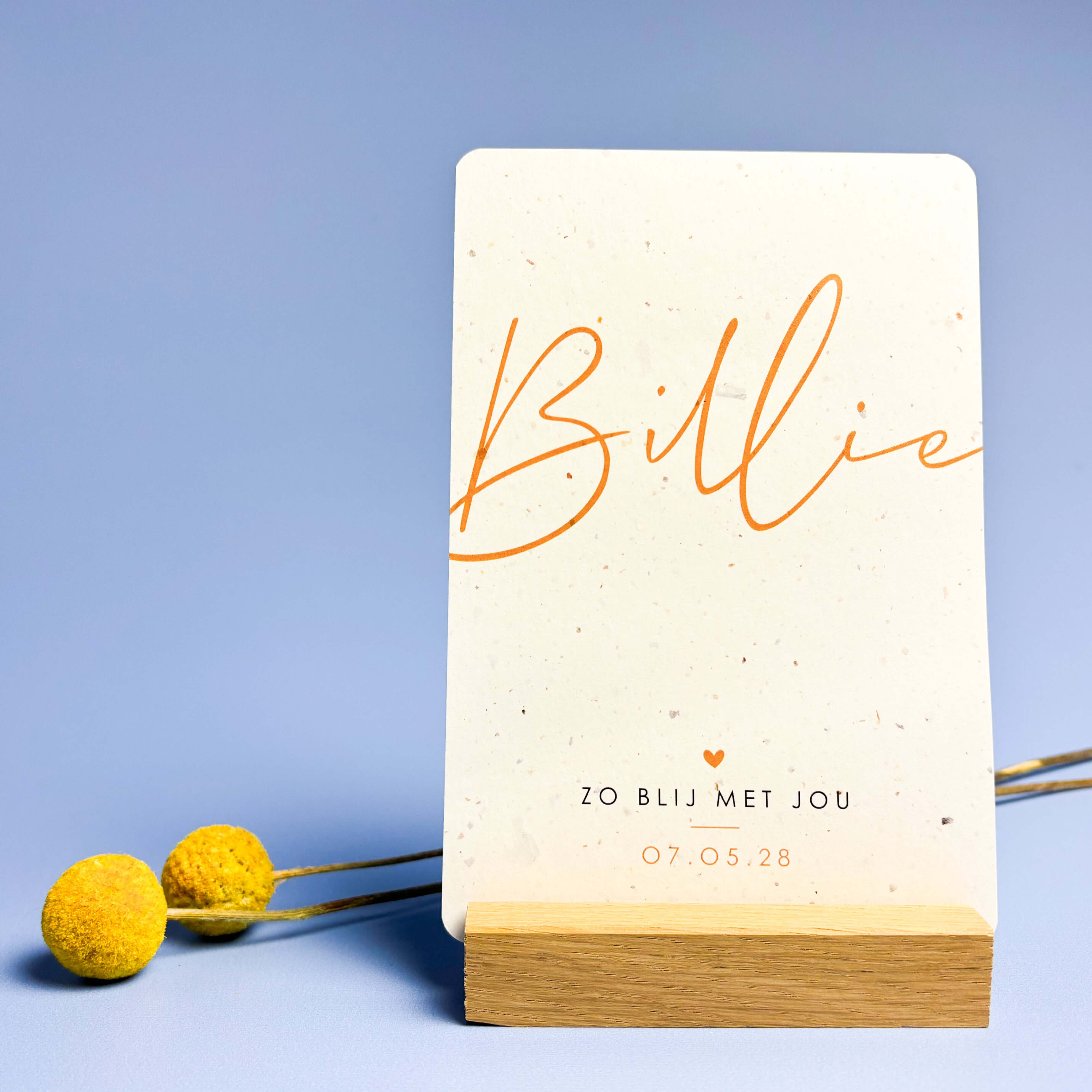 Eenvoudig maar stijlvol geboortekaartje voor de geboorte van je baby. De naam wordt in sierlijke letters geschreven en onderin staat een klein hartje met geboorte details.