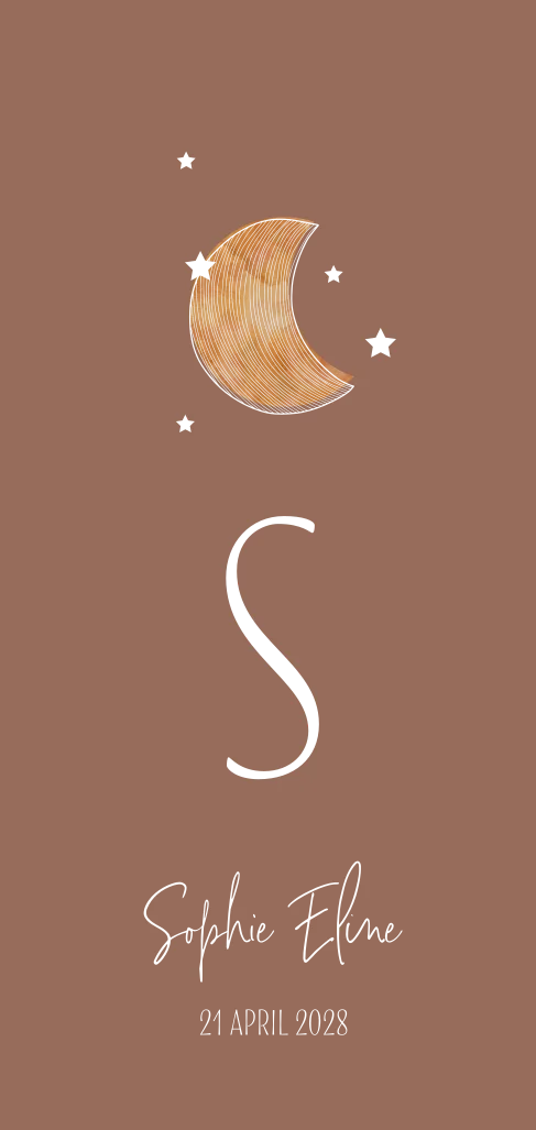 Geboortekaartje meisje steenrood maan sterren goudfolie