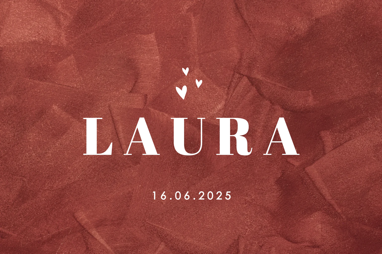 Een chique geboortekaartje voor jullie dochter door het gebruik van roségoudfolie! Op de steenrode velvetlook achtergrond komt de naam in strakke typografie mooi naar voren en de kleine hartjes maken het helemaal af.| Totaalprijs: 0 |