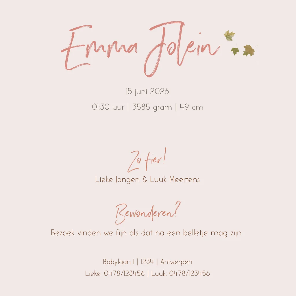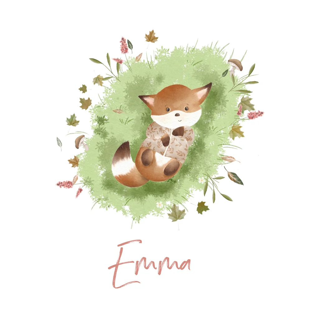 Schattig geboortekaartje in herfst thema met een vosje die ligt in het gras.