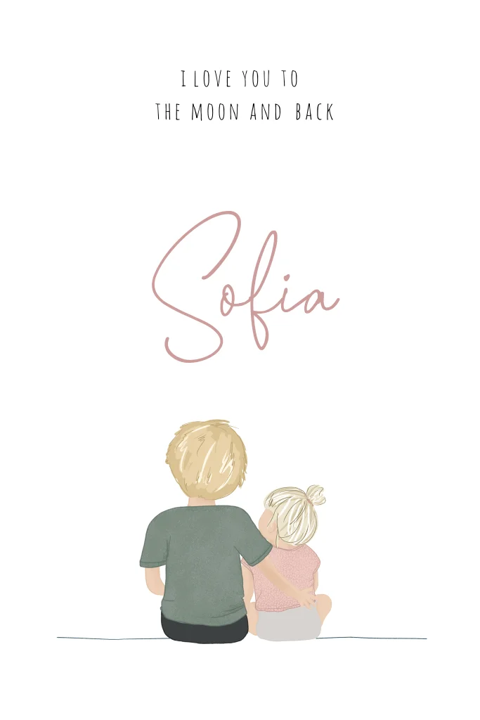 Geboortekaartje met illustratie van zusje met grote broer