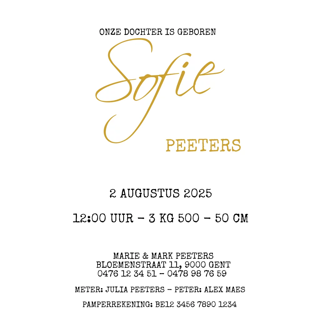 Bekijk het goudfolie geboortekaartje.