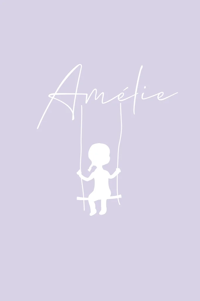 Een lief geboortekaartje voor de geboorte van jullie dochtertje. Het lila kaartje heeft een wit silhouet van een meisje op de schommel met daarboven sierlijke letters.Totaalprijs: 0 |