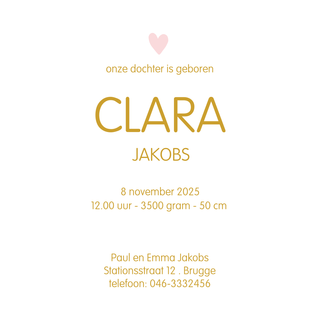 Tip: Een gouden envelop zal prachtig staan samen bij dit geboortekaartje!