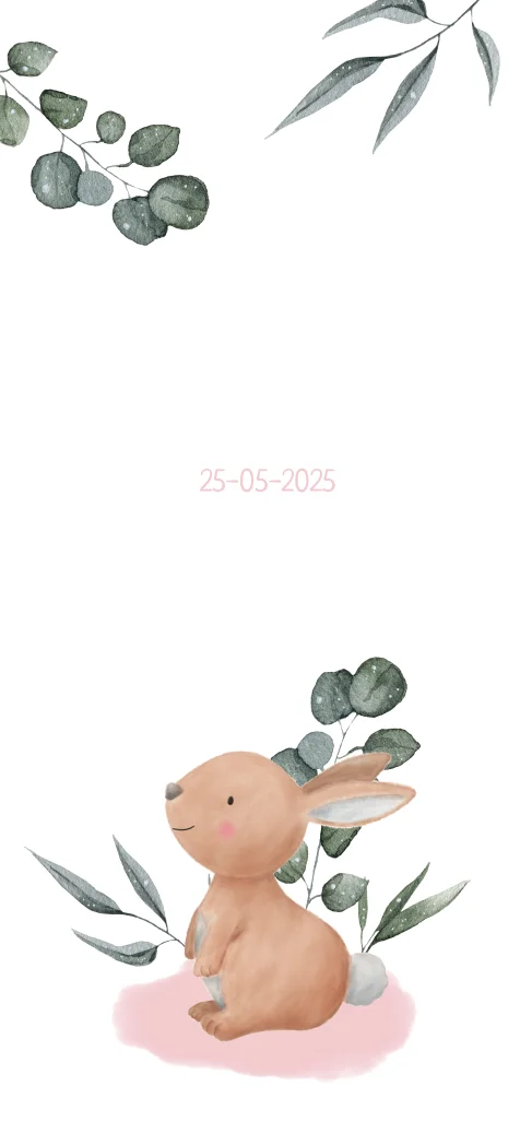 Wat een schattig geboortekaartje voor een meisje! Door de illustratie van het konijn op het roze vlak en de takjes heeft deze kaart een lieve uitstraling. De naam en de hartjes worden in goudfolie gedrukt.