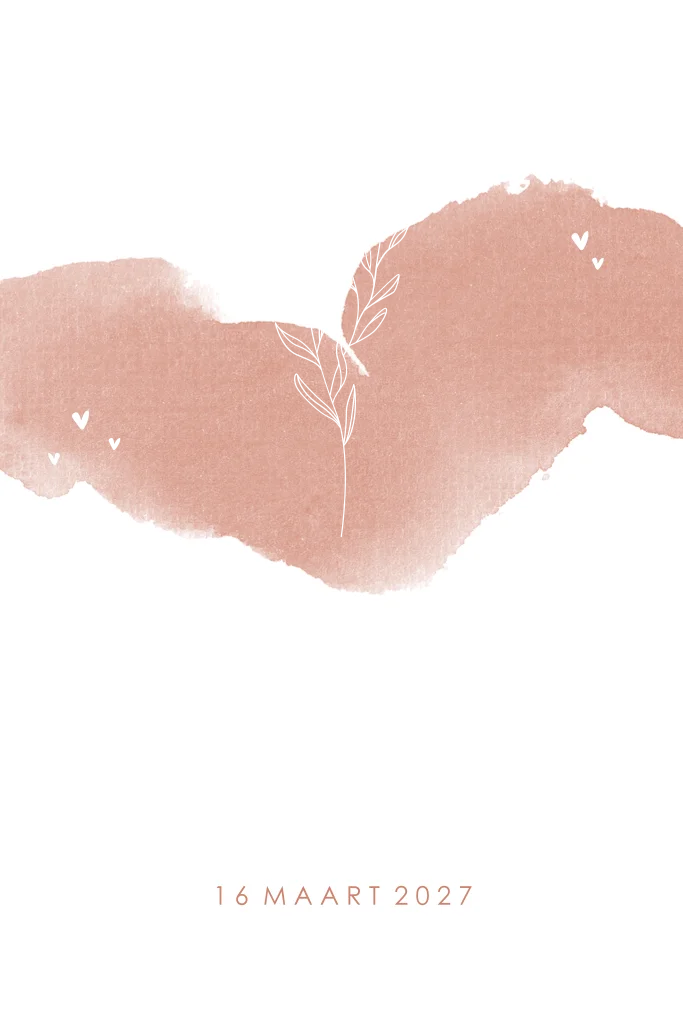Mooi babykaartje met roze aquarel strepen op de achtergrond. De goudkleurige letters, stipjes en het takje maken dit een chique en hip kaartje. Het kaartje is helemaal naar wens aan te passen.