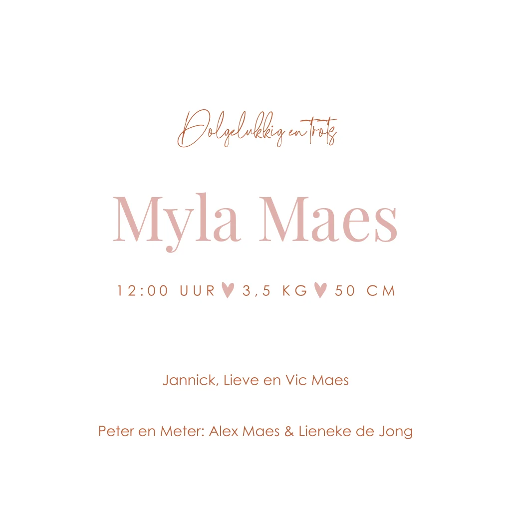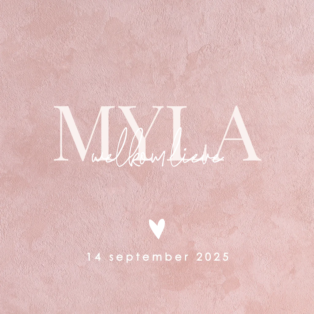 Een hip vierkant geboortekaartje met een roze velvet-look. De kaart heeft details van roségoudfolie en op de binnenzijde is een foto te plaatsen.| Totaalprijs: 0 |