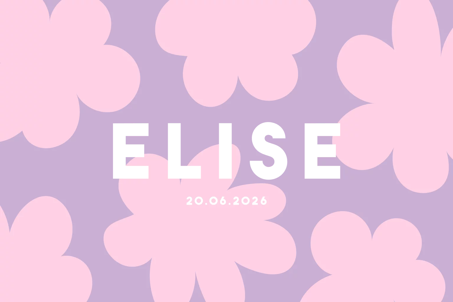 Kleurrijk geboortekaartje met grote bloemen en holografische folie