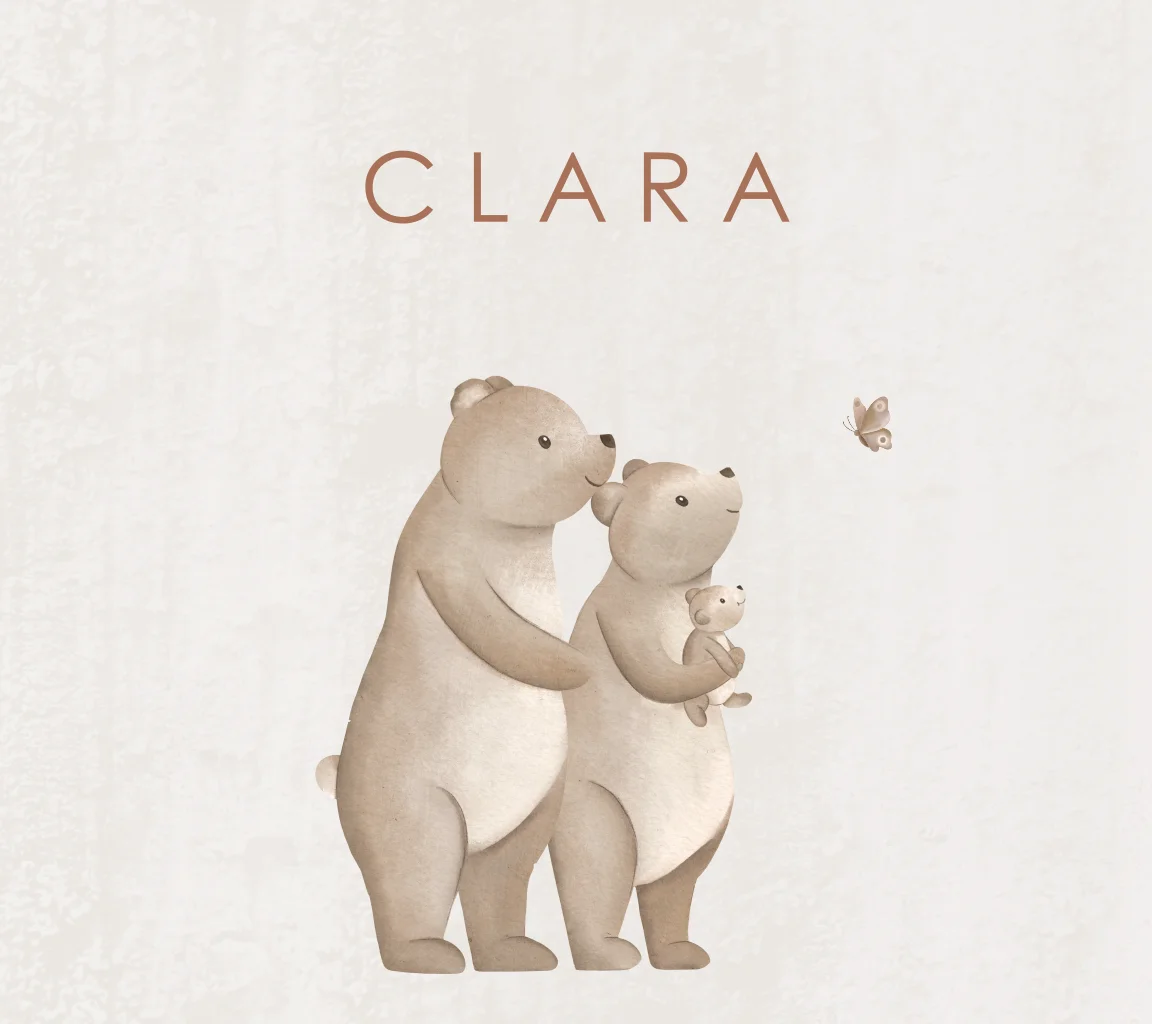 Lief geboortekaartje met een papa en mama beer die hun kleintje vasthouden. Stuur dit kaartje naar al jullie vrienden en familie ter ere van de geboorte van jullie kindje.| Totaalprijs: 0 |