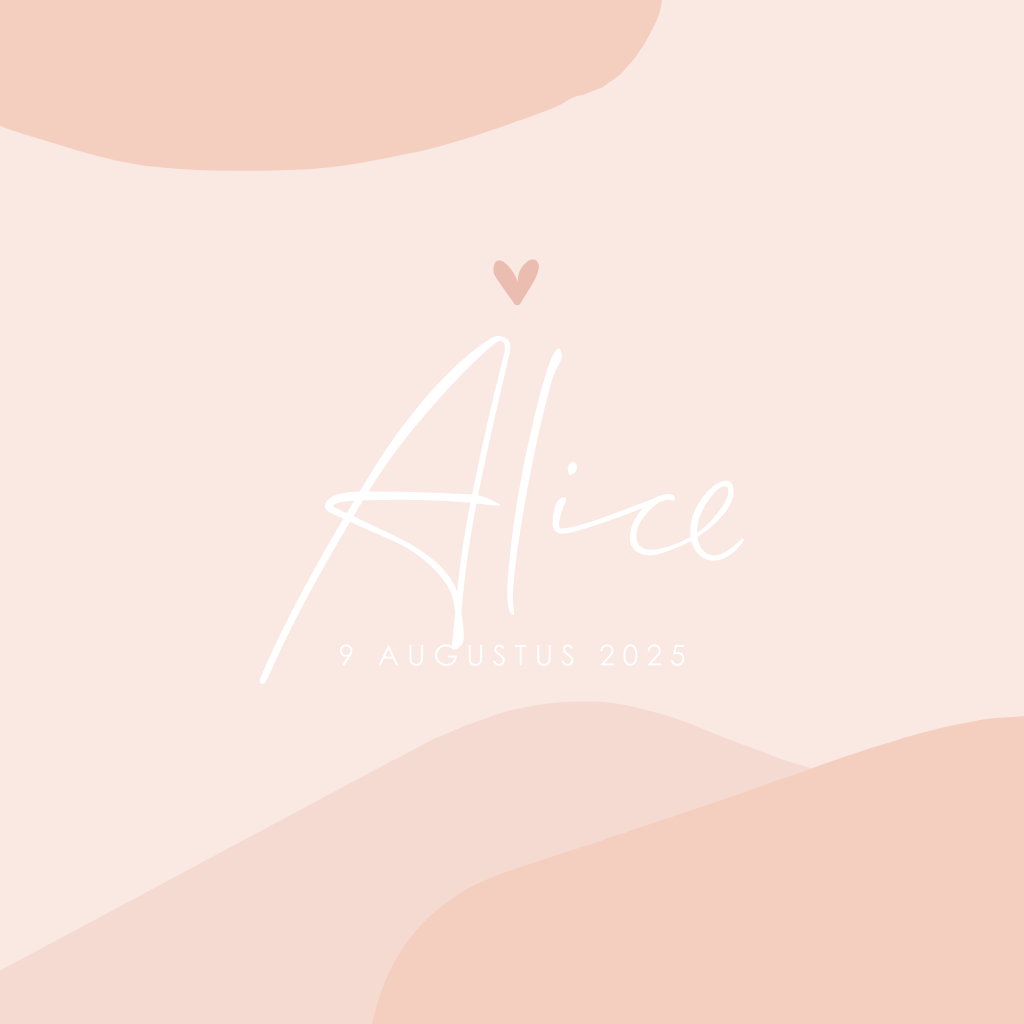 Een lief geboortekaartje met roze organische vormen en roségoudfolie.Plaats zelf de teksten en elementen eenvoudig op de juiste plek in onze opmaaktool. Heb je hier hulp bij nodig? Neem gerust even contact met ons op!