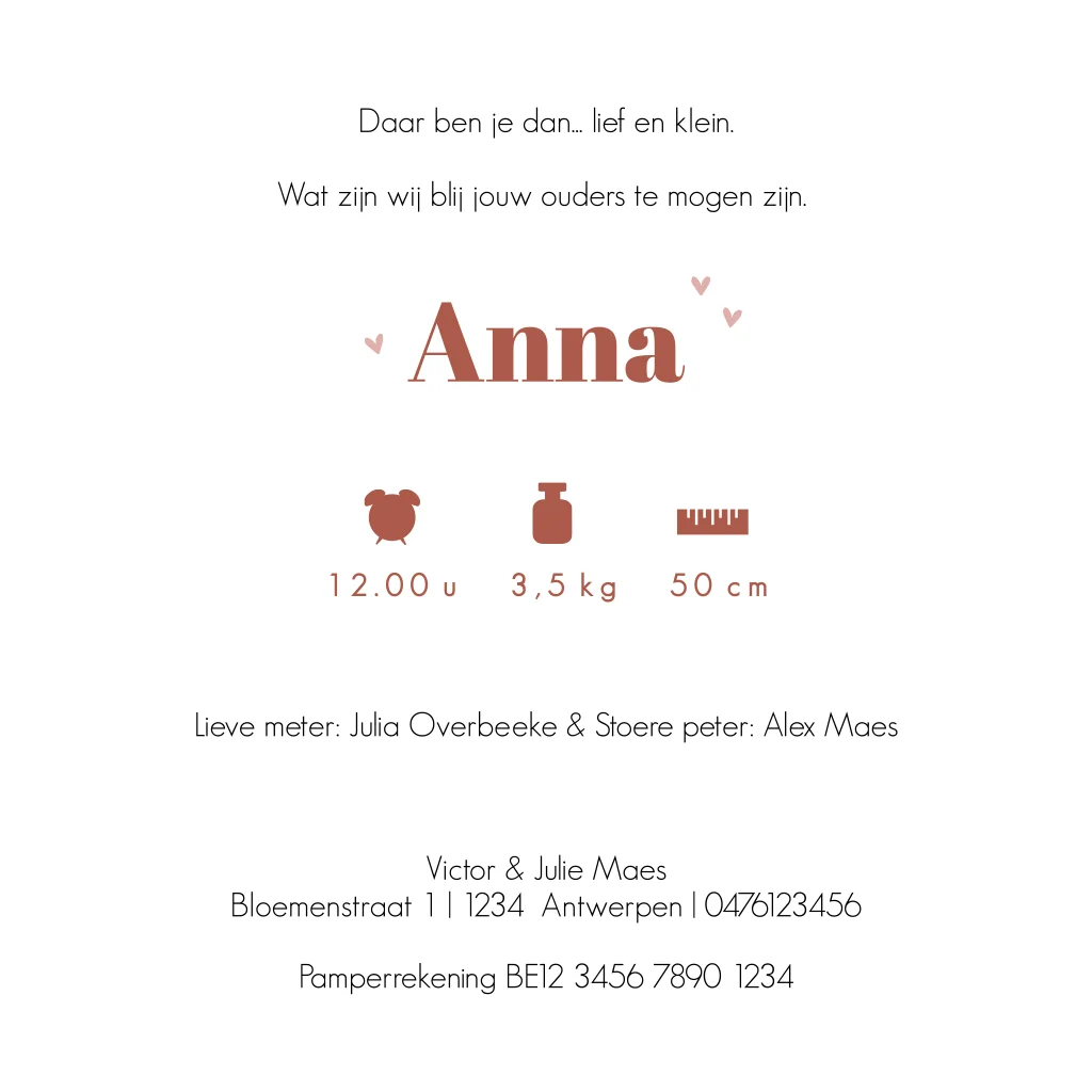 Een vierkant geboortekaartje met een achtergrond in rode velvet-look. Boven de naam staat een kleine regenboog afgebeeld met hartjes. Het kaartje is volledig naar eigen wens te personaliseren in de editor.| Totaalprijs: 0 |