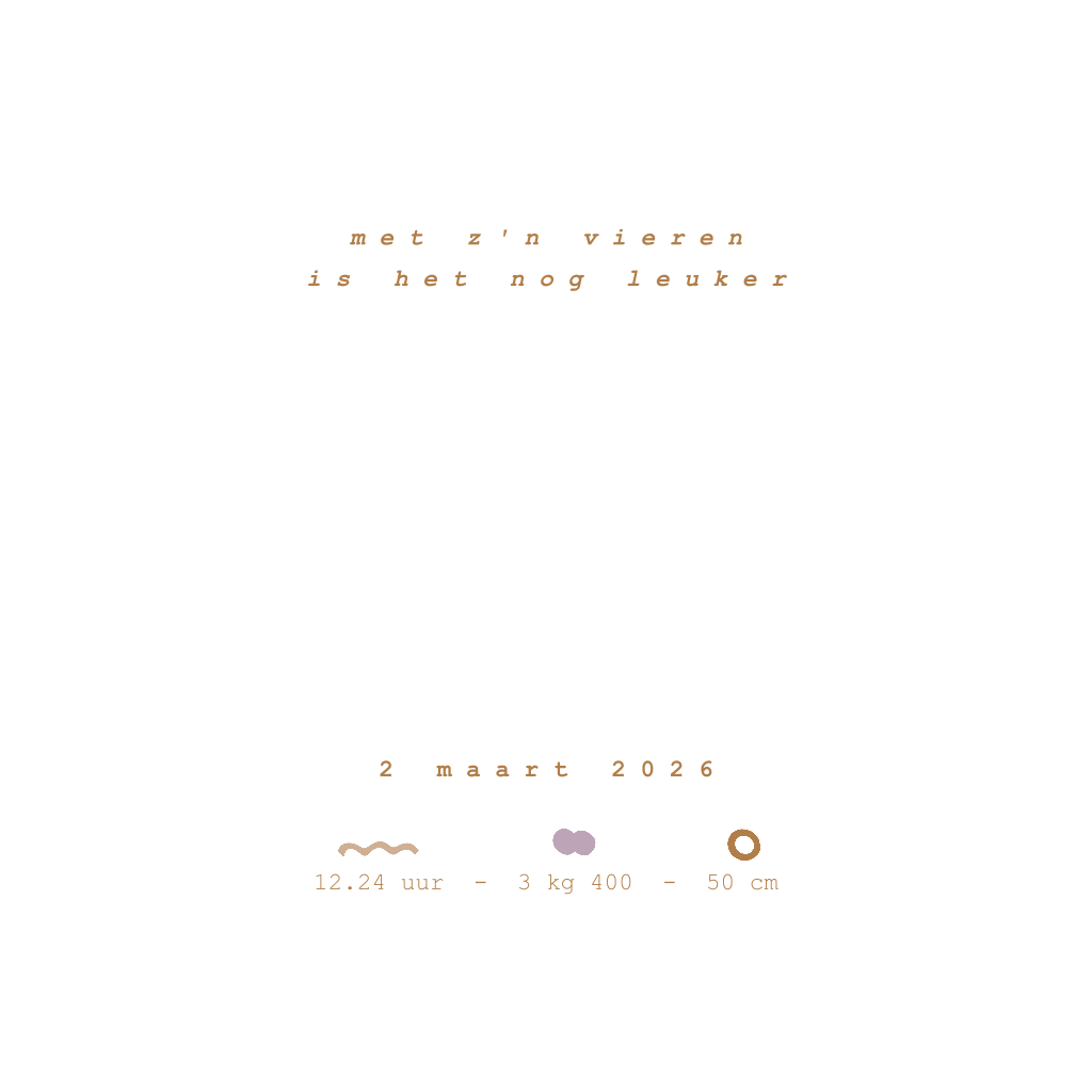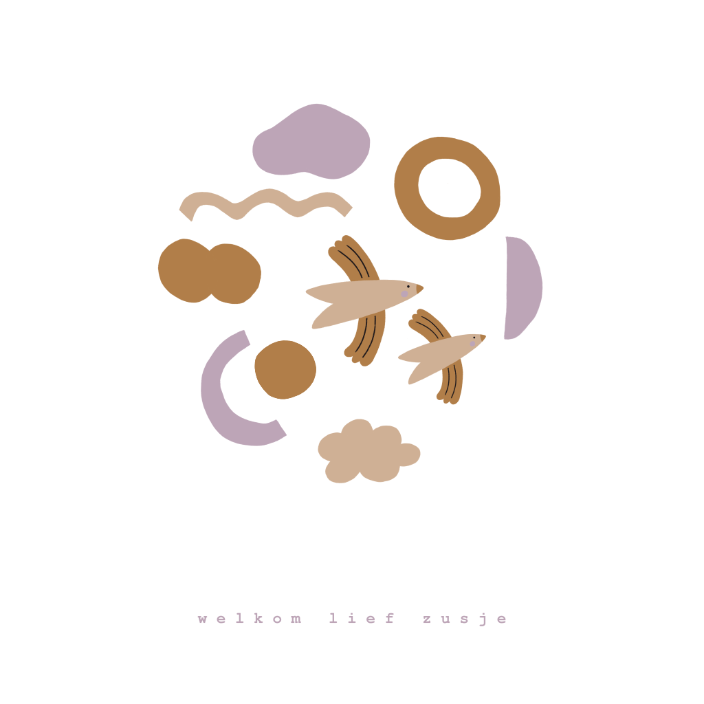 Lief geboortekaartje met vogels, abstracte vormen en goudfolie. Pas de tekst van het geboortekaartje aan en maak er jullie eigen persoonlijke geboortekaartje van.