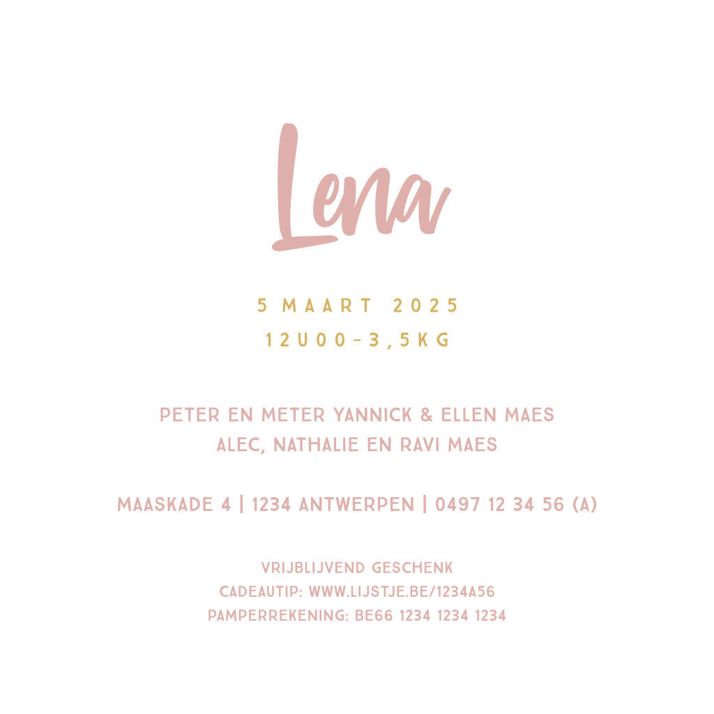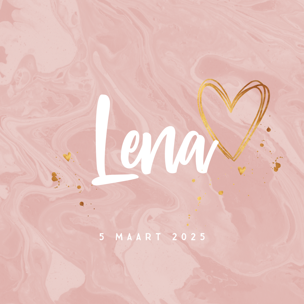 Lief geboortekaartje met als achtergrond een roze marmer-look. Op de binnenkant kan een mooie foto van jullie kindje worden geplaatst.