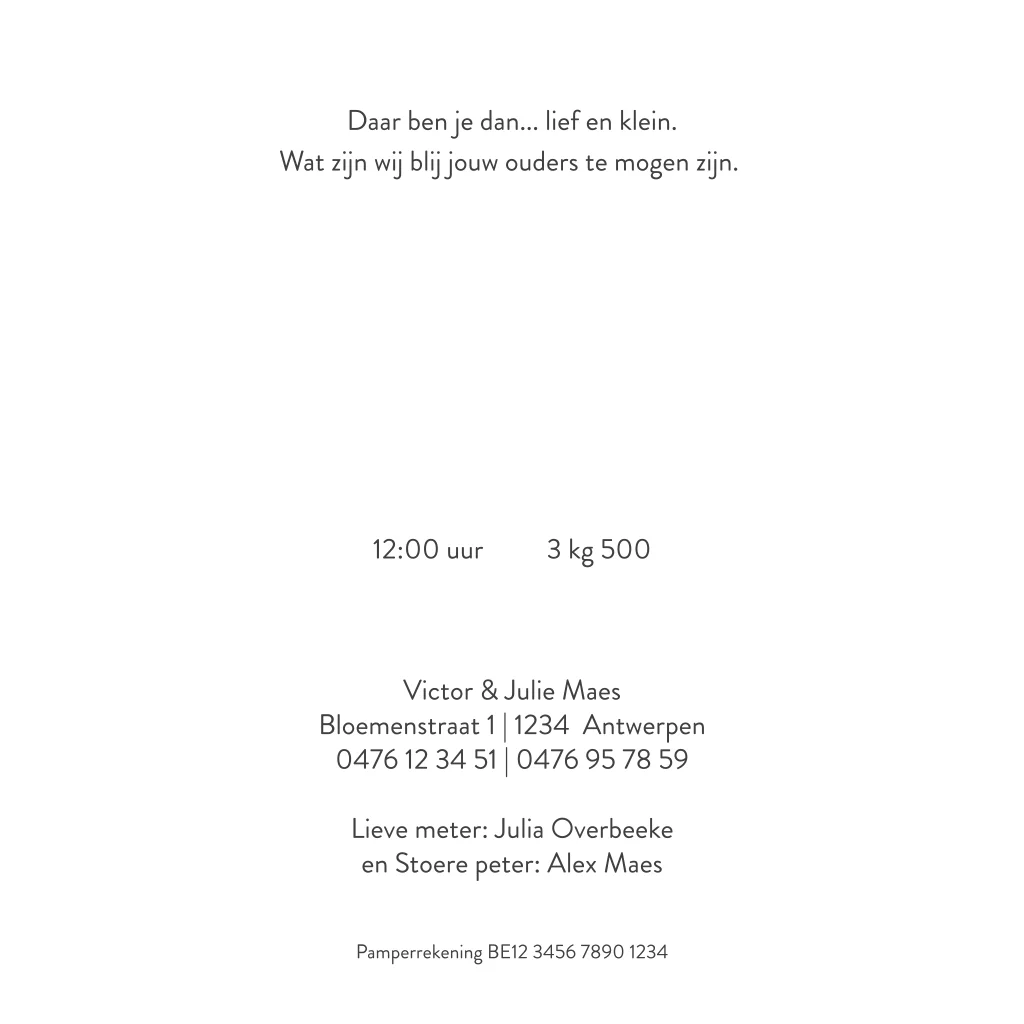 Velvet-look geboortekaartje met roségoudfolie takje en hartjes